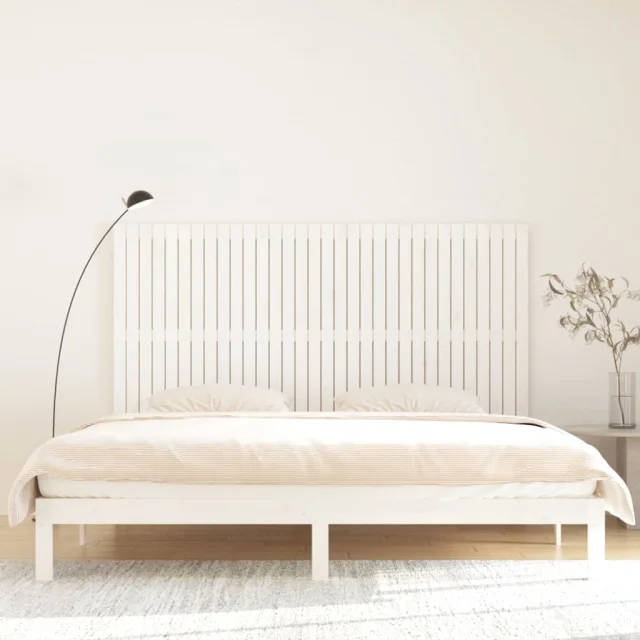 vidaXL Stensko posteljno vzglavje belo 204x3x110 cm trdna borovina