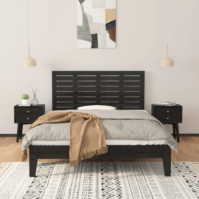 vidaXL Stensko posteljno vzglavje črno 156x3x63 cm trdna borovina
