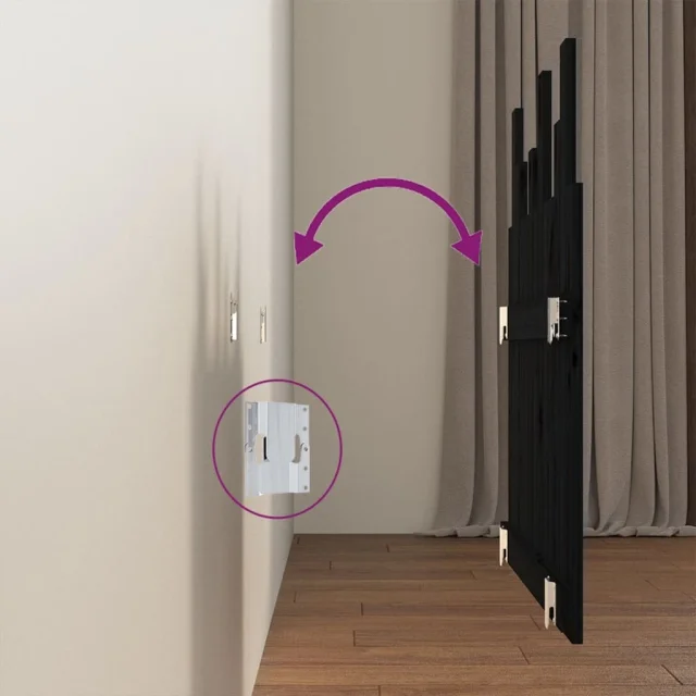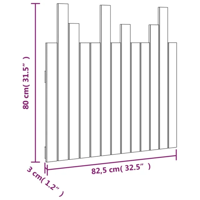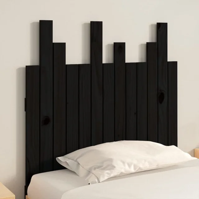 vidaXL Stensko posteljno vzglavje črno 82,5x3x80 cm trdna borovina