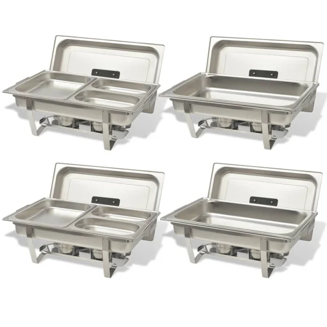 vidaXL Štiridelni komplet šefing posod za serviranje nerjaveče jeklo