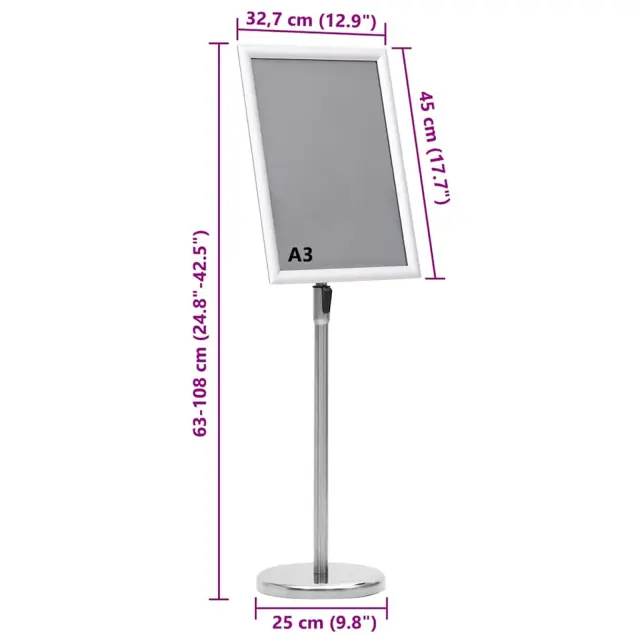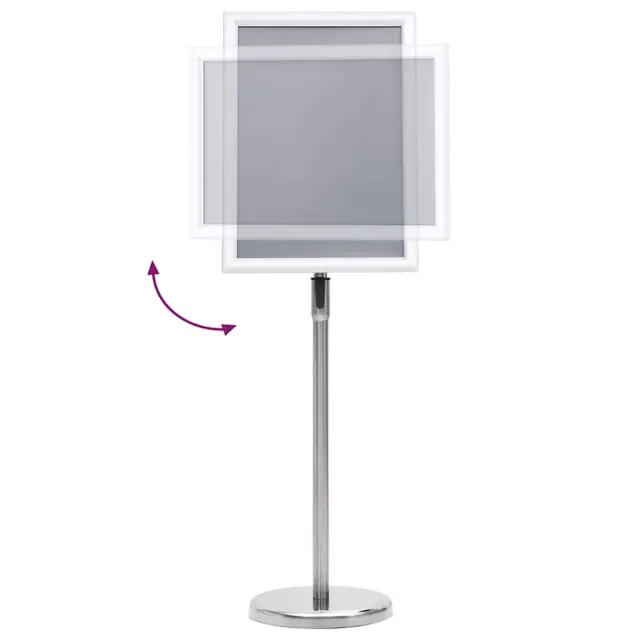 To stojalo za plakate je vrhunska in večnamenska rešitev, idealna za poslovne in osebne predstavitve. Čiste linije in sodobni izgled omogočajo široko uporabnost v različnem okolju. Srebrna aluminijasta zasnova doda sodoben pridih, ki je primeren tako za notranje kot zunanje prostore, kot so sejmi ali trgovine, kjer je pomembno jasno prikazati informacije. Ne glede na to, ali predstavljate promocijske materiale ali informativne plakate, se to stojalo zlahka prilagaja različnim potrebam.