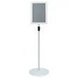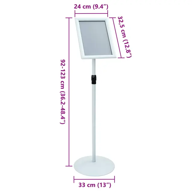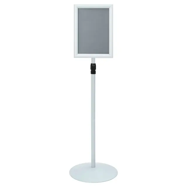 Trajni podstavek za plakate je odlična izbira za pisarniška in industrijska okolja. Ima enostaven in minimalističen izgled, čiste linije in visoko funkcionalnost. Črn zaključek omogoča, da se super prilega vsaki pisarni ali prodajnem prostoru. Odličen za predstavljanje promocijskih materialov ali pomembnih obvestil, je idealna izbira za tiste, ki iščejo zanesljivo rešitev, ki združuje lepo obliko in funkcionalnost.