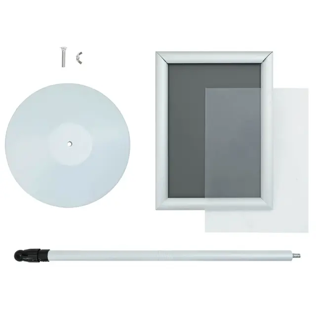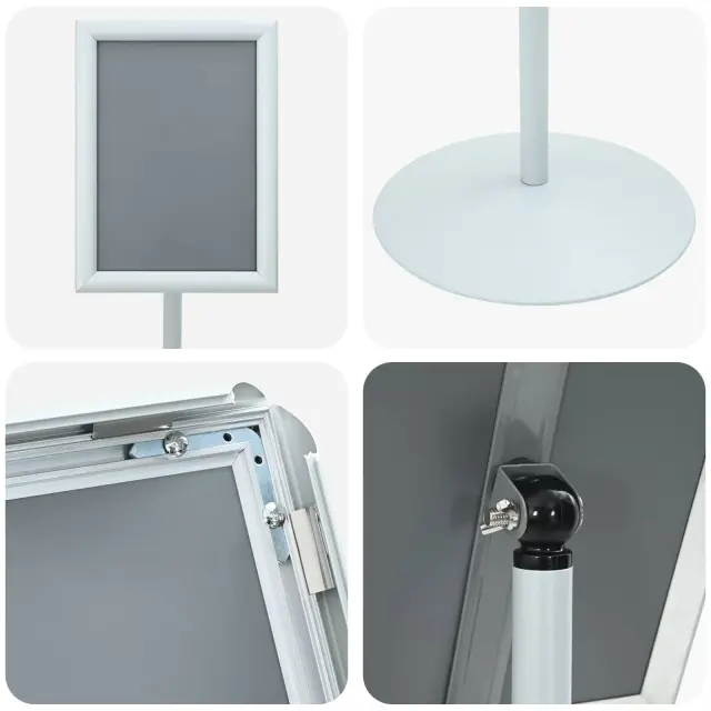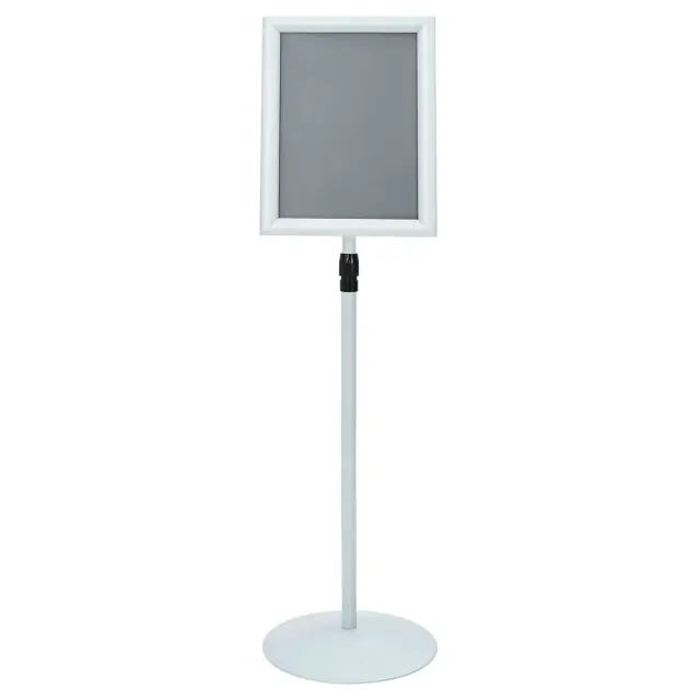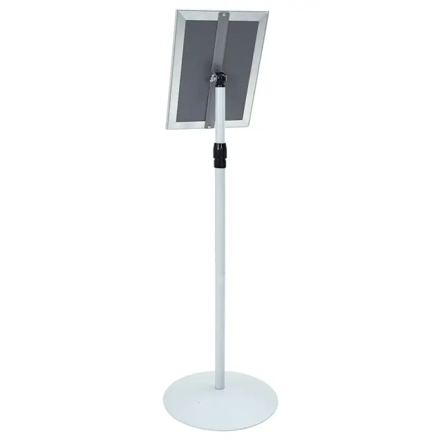 Trajni podstavek za plakate je odlična izbira za pisarniška in industrijska okolja. Ima enostaven in minimalističen izgled, čiste linije in visoko funkcionalnost. Črn zaključek omogoča, da se super prilega vsaki pisarni ali prodajnem prostoru. Odličen za predstavljanje promocijskih materialov ali pomembnih obvestil, je idealna izbira za tiste, ki iščejo zanesljivo rešitev, ki združuje lepo obliko in funkcionalnost.