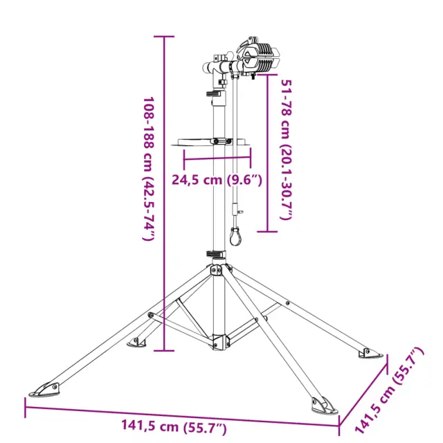 • Celotne dimenzije: 141,5 x 141,5 x (108-188) cm (D x Š x V)