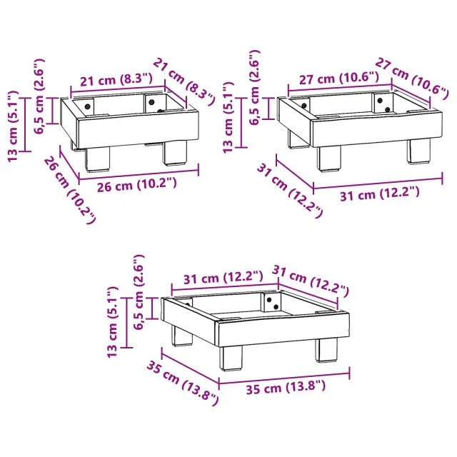 Ta set stojal za rastline je odlična izbira za stilno prikazovanje tvojih dragocenih rastlin. Narejen iz trdnega mahagonijevega lesa, se lepo poda v vsako teraso ali vrt. S svojo teksturirano površino vsak kos ni le podpora za rastline, ampak tudi popestritev tvojega zunanjega prostora s pridihom ročne izdelave. Tri različne velikosti omogočajo kreativno postavitev rastlin na različnih višinah, kar ustvari prijeten vrtni kotiček, poln naravne privlačnosti.