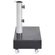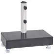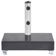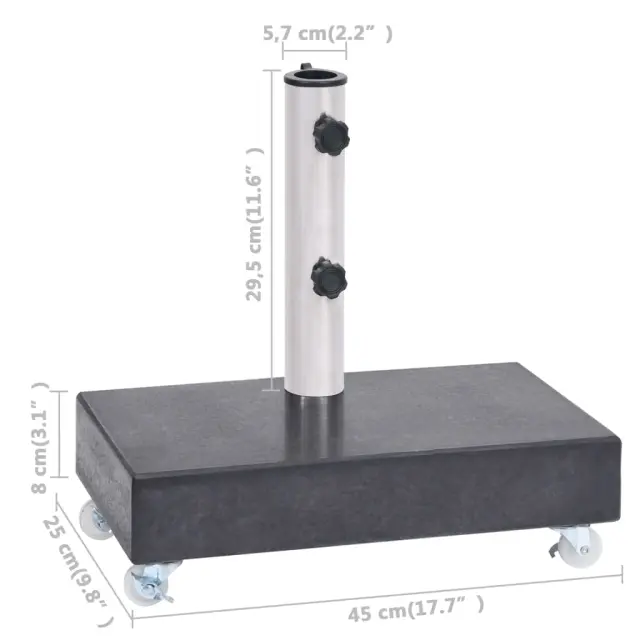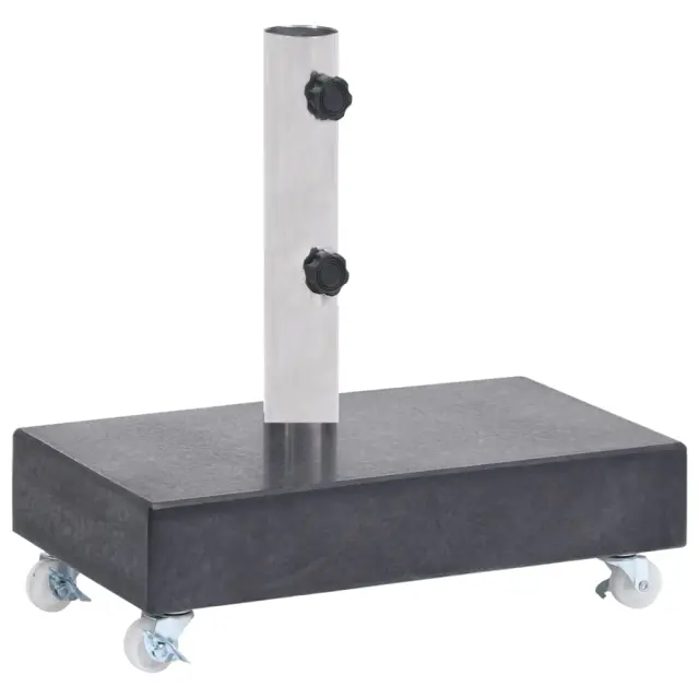 To stojalo za senčnik ima trpežno granitno konstrukcijo, ki je zelo stabilna zahvaljujoč veliki teži. Granit ima visokokakovosten izgled in videz, zato podstavek za senčnik izgleda prefinjeno ter v vaš zunanji prostor dodaja pridih elegance. Lepo se bo podal k razkošnemu vrtnemu pohištvu. Cev je izdelana iz nerjavečega jekla. Kolesa omogočajo enostavno premikanje podstavka.