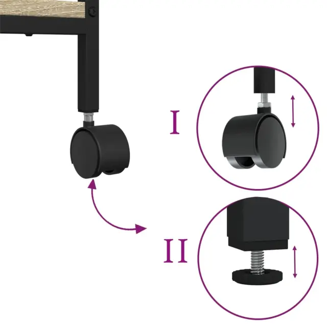 • Prilagodljiva namestitev: To stojalo za računalniški tiskalnik se lahko uporablja na dva načina. Z nastavljivimi nogami za stabilnost na neravnih površinah ga lahko postavite na tla ali pritrdite kolesa za lažje premikanje.