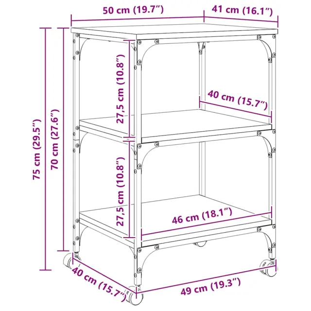 vidaXL Stojalo za tiskalnik Umetni hrast 50 x 41 x 75 cm