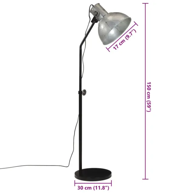 vidaXL Stoječa svetilka 25 W vintage srebro 30x30x90-150 cm E27
