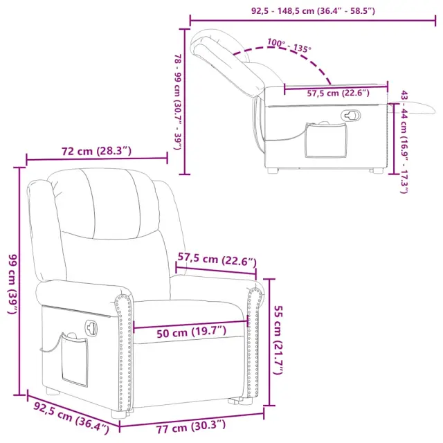 • Priročen stranski žep: Ta naslanjač ima stranski žep za daljinski upravljalnik, v katerem boste imeli svoje potrebščine na dosegu roke.