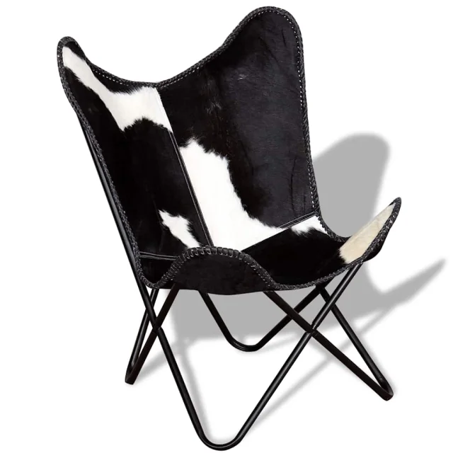 Ta klasičen usnjen metuljast stol ima nežno ukrivljeno naslonjalo in sedež, ki zagotavljata zadostno podporo pri največjem udobju. Ta retro metuljasti stol, izdelan iz pravega govejega usnja, je trpežen in izdelan tako, da traja. Tudi štirje vogali stola so oviti v pravo usnje. Trden, prašno lakiran železen okvir prispeva k stabilnosti in vzdržljivosti.