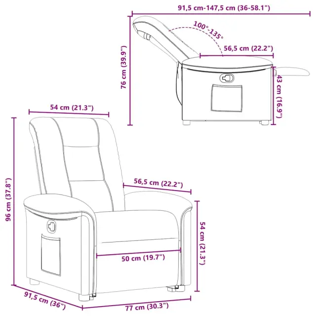 • Funkcija ročnega nagiba: Ta stol z nagibom ima ročaj na desni strani. S preprostim potegom ročaja lahko ročno nastavite naslon za noge in naslonjalo za hrbet v poljuben položaj glede na vaše udobje. Ta funkcija omogoča največji nagib 135 stopinj. Poleg tega lahko naslonjalo hitro vrnete na prvotno mesto z enostavnim potegom ročaja.
