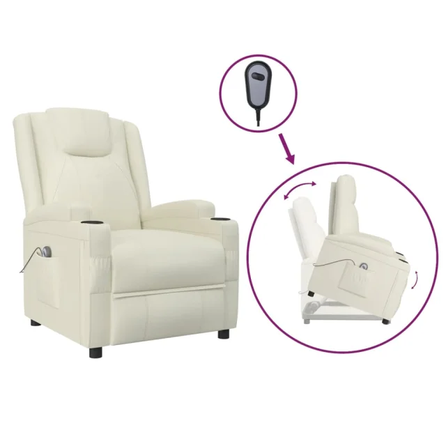 vidaXL Stol s funkcijo vstajanja kremno belo umetno usnje