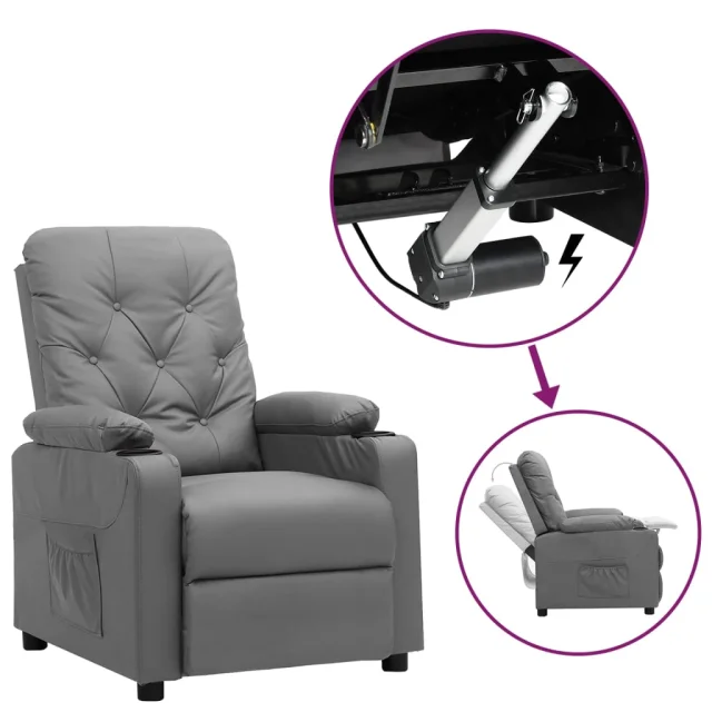 vidaXL Stol s funkcijo vstajanja sivo umetno usnje