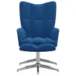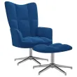 vidaXL Stol za sproščanje s stolčkom moder žamet