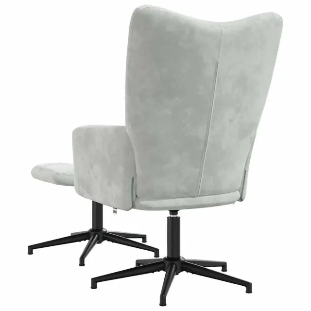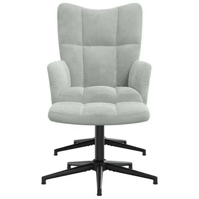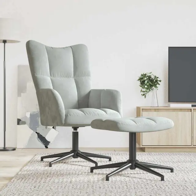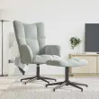 vidaXL Stol za sproščanje s stolčkom svetlo siv žamet