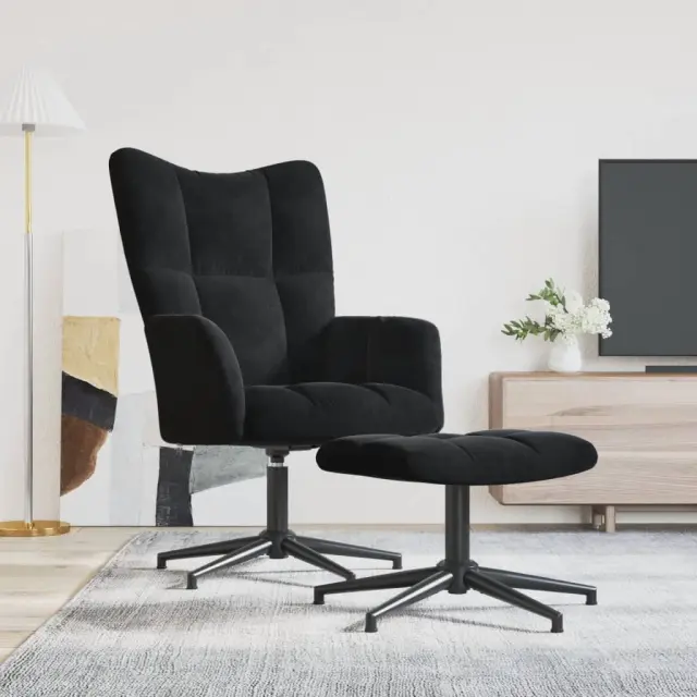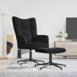 vidaXL Stol za sproščanje s stolčkom črn žamet