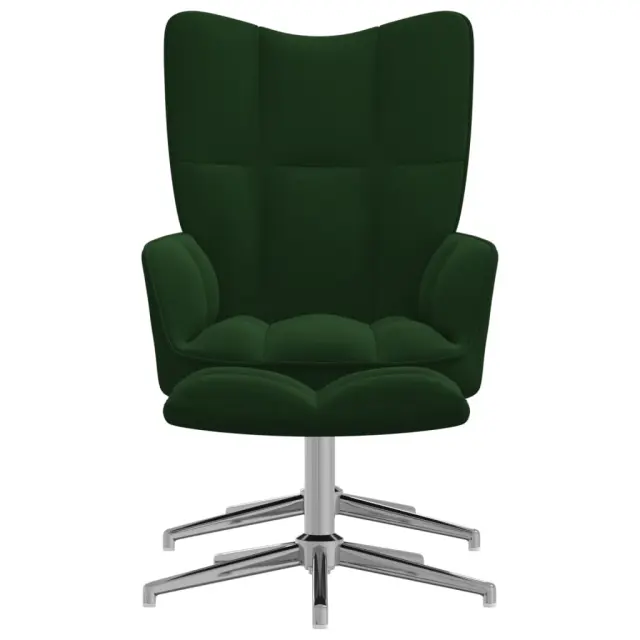 Naslanjač je estetsko dodelan s kvadrati. Zaradi debele penaste podloge, ki je oblečena v mehak žamet, lahko uživate v optimalnem udobju med sedenjem. Ta stol za sproščanje je zelo fleksibilen, saj se vrti za 360 stopinj. Stol za sproščanje s stolčkom je podprt z jeklenim okvirjem in nogami, zato je stabilen in vzdržljiv.