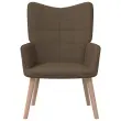 Fotelj s šivi v obliki kock je estetsko dodelan. Zaradi penaste podloge, ki je oblazinjena z mehkim blagom, lahko uživate v optimalnem udobju med sedenjem. Jedilni stol s stolčkom je podprt z jeklenim okvirjem in lesenimi nogami, zato je stabilen in vzdržljiv.