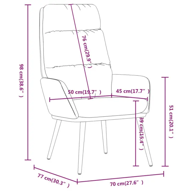 Ta debelo podložen stol za sproščanje je oblečen v blago in umetno usnje, zato zagotavlja izjemno udobno sedenje. Stol za dnevno sobo s kovinskim okvirjem je trden in stabilen. Naslonjala za roke omogočajo udoben počitek rok.