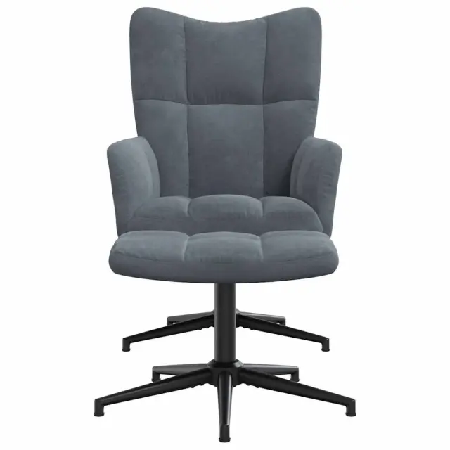 Naslanjač je estetsko dodelan s kvadrati. Zaradi debele penaste podloge, ki je oblečena v mehak žamet, lahko uživate v optimalnem udobju med sedenjem. Ta stol za sproščanje je zelo fleksibilen, saj se vrti za 360 stopinj. Stol za sproščanje s stolčkom je podprt z jeklenim okvirjem in nogami, zato je stabilen in vzdržljiv.