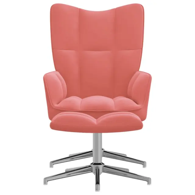 Naslanjač je estetsko dodelan s kvadrati. Zaradi debele penaste podloge, ki je oblečena v mehak žamet, lahko uživate v optimalnem udobju med sedenjem. Ta stol za sproščanje je zelo fleksibilen, saj se vrti za 360 stopinj. Stol za sproščanje s stolčkom je podprt z jeklenim okvirjem in nogami, zato je stabilen in vzdržljiv.