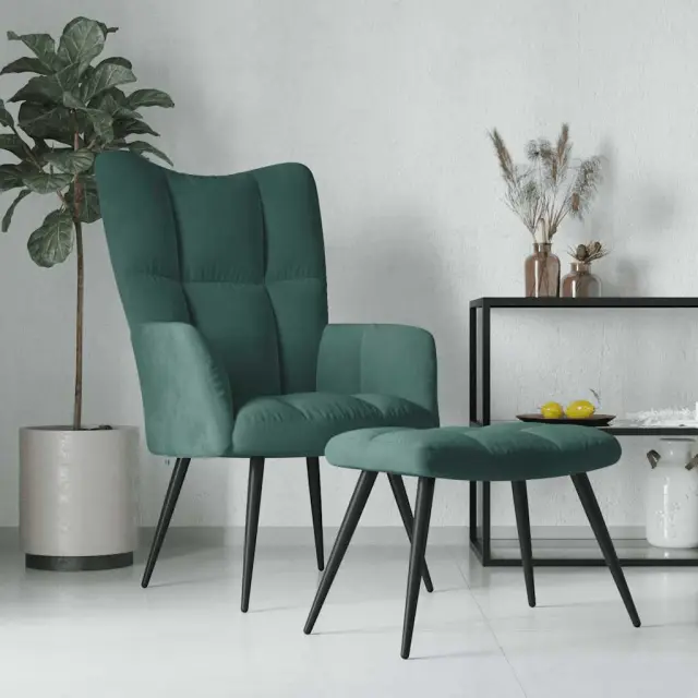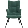 vidaXL Stol za sproščanje s stolčkom temno zelen žamet