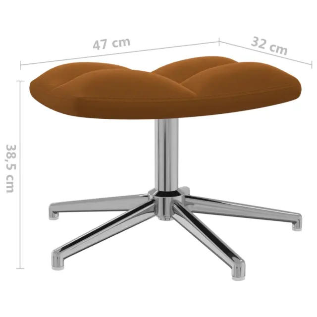 Naslanjač je estetsko dodelan s kvadrati. Zaradi debele penaste podloge, ki je oblečena v mehak žamet, lahko uživate v optimalnem udobju med sedenjem. Ta stol za sproščanje je zelo fleksibilen, saj se vrti za 360 stopinj. Stol za sproščanje s stolčkom je podprt z jeklenim okvirjem in nogami, zato je stabilen in vzdržljiv.