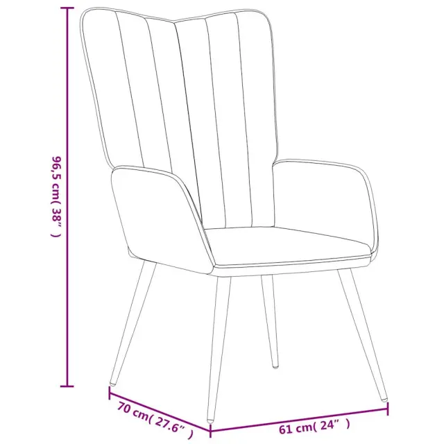 Ta naslanjač s črtami na naslonjalu je lep na pogled. Zahvaljujoč penasti podlogi in mehkemu žametu boste lahko med sedenjem uživali v optimalnem udobju. Podpira ju jeklen okvir, zato sta stol za sproščanje in stolček stabilna in vzdržljiva.