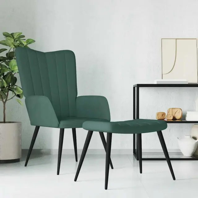 vidaXL Stol za sproščanje s stolčkom temno zelen žamet