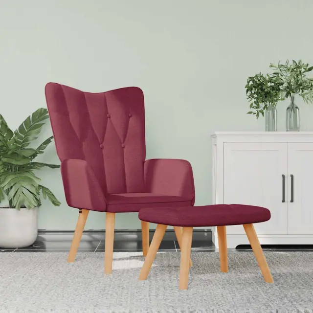 vidaXL Stol za sproščanje s stolčkom vinsko rdeče blago