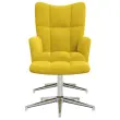Naslanjač je estetsko dodelan s kvadrati. Zaradi debele penaste podloge, ki je oblečena v mehak žamet, lahko uživate v optimalnem udobju med sedenjem. Ta stol za sproščanje je zelo fleksibilen, saj se vrti za 360 stopinj. Stol za sproščanje s stolčkom je podprt z jeklenim okvirjem in nogami, zato je stabilen in vzdržljiv.