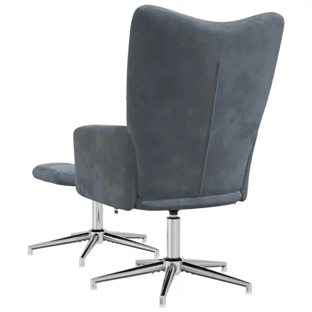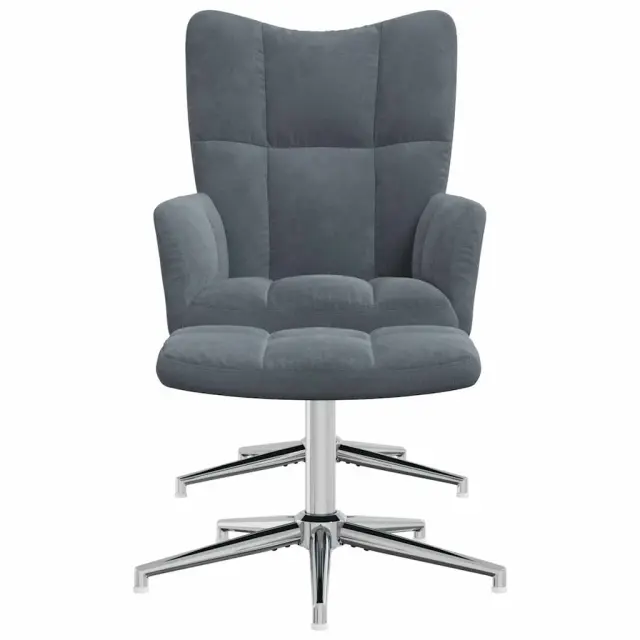 Naslanjač je estetsko dodelan s kvadrati. Zaradi debele penaste podloge, ki je oblečena v mehak žamet, lahko uživate v optimalnem udobju med sedenjem. Ta stol za sproščanje je zelo fleksibilen, saj se vrti za 360 stopinj. Stol za sproščanje s stolčkom je podprt z jeklenim okvirjem in nogami, zato je stabilen in vzdržljiv.