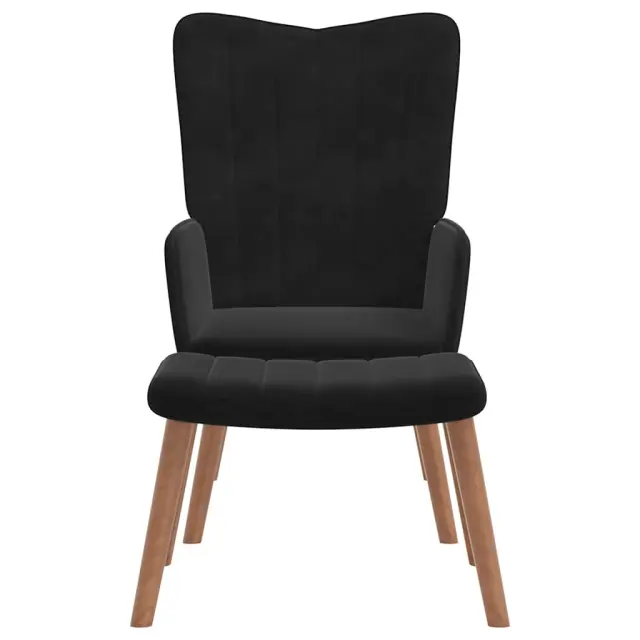 vidaXL Stol za sproščanje s stolčkom črn žamet