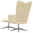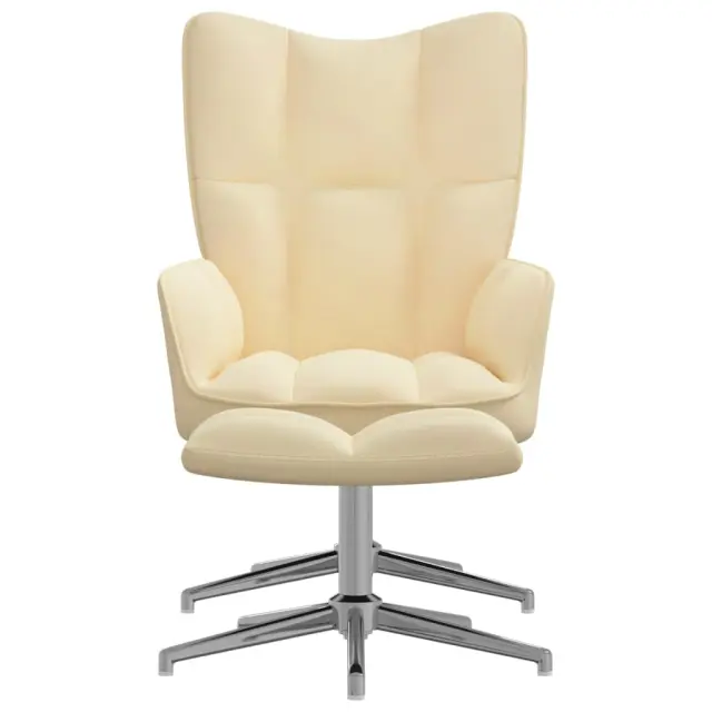 vidaXL Stol za sproščanje s stolčkom kremno bel žamet