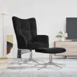 vidaXL Stol za sproščanje s stolčkom črn žamet