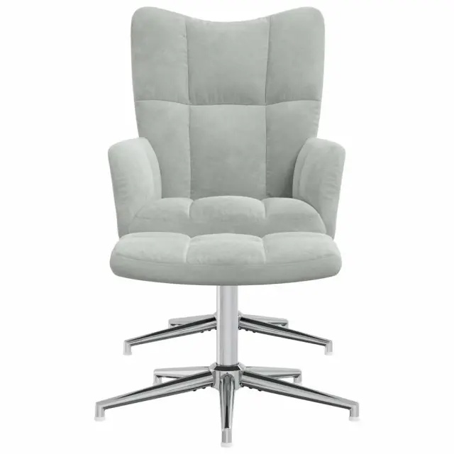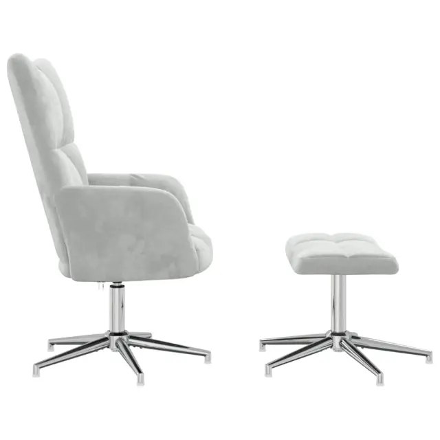 vidaXL Stol za sproščanje s stolčkom svetlo siv žamet