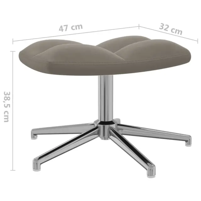 Naslanjač je estetsko dodelan s kvadrati. Zaradi debele penaste podloge, ki je oblečena v mehak žamet, lahko uživate v optimalnem udobju med sedenjem. Ta stol za sproščanje je zelo fleksibilen, saj se vrti za 360 stopinj. Stol za sproščanje s stolčkom je podprt z jeklenim okvirjem in nogami, zato je stabilen in vzdržljiv.