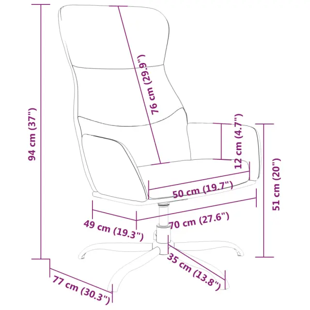 Ta debelo podložen stol za sproščanje je oblečen v blago in umetno usnje, zato zagotavlja izjemno udobno sedenje. Stol za dnevno sobo s kovinskim okvirjem je trden in stabilen. Naslonjala za roke omogočajo udoben počitek rok. Lahko se tudi vrti za 360 stopinj za odlično fleksibilnost.