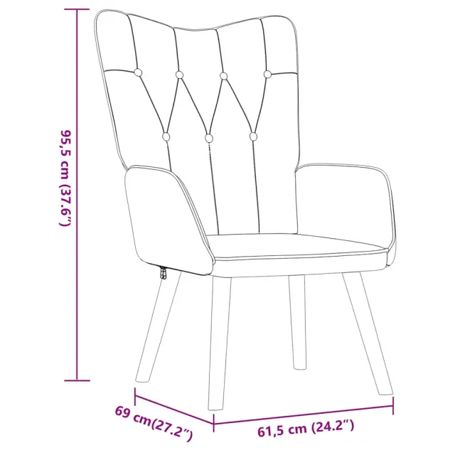 Fotelj je estetsko dodelan s 7 gumbi in črtami. Zaradi penaste podloge, ki je oblazinjena z mehkim blagom, lahko uživate v optimalnem udobju med sedenjem. Jedilni stol s stolčkom je podprt z jeklenim okvirjem in kovinskimi nogami, zato je stabilen in vzdržljiv.