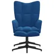Naslanjač je estetsko dodelan s kvadrati. Zaradi debele penaste podloge, ki je oblečena v mehak žamet, lahko uživate v optimalnem udobju med sedenjem. Ta stol za sproščanje je zelo fleksibilen, saj se vrti za 360 stopinj. Stol za sproščanje s stolčkom je podprt z jeklenim okvirjem in nogami, zato je stabilen in vzdržljiv.