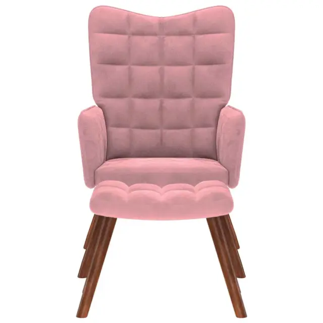 vidaXL Stol za sproščanje s stolčkom roza žamet