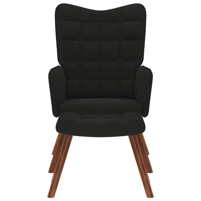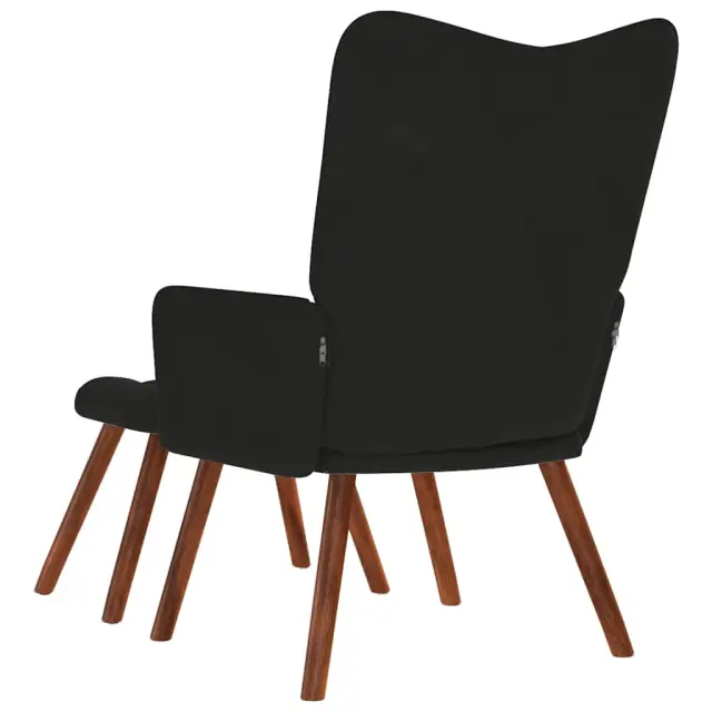 vidaXL Stol za sproščanje s stolčkom črn žamet