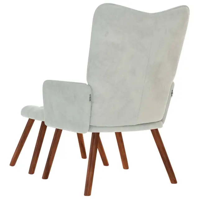 vidaXL Stol za sproščanje s stolčkom svetlo siv žamet