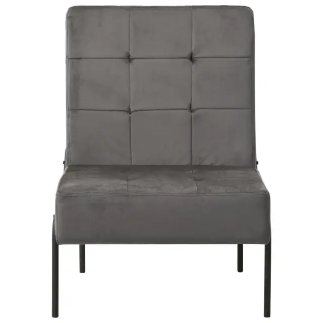 Ta stol za sproščanje z elegantnim dizajnom bo praktičen in sodoben dodatek za vaš dom. Ta stol za dnevno sobo je oblečen v mehak žamet in ergonomsko oblikovan, zato nudi udobno sedenje. Podložen sedež in naslonjalo za hrbet nudita dodatno udobje. Prašno premazane kovinske noge zagotavljajo dobro stabilnost in trdnost.Barva: Temno siva in črnaMaterial: žamet (100 % poliester), prašno premazana kovinaDimenzije: 65 x 79 x 87 cm (Š x G x V)Širina sedeža: 61 cmGlobina sedeža: 51 cmDebelina sedeža: 18 cmVišina naslonjala: 51 cmVišina sedeža, merjena od tal: 42 cmMaksimalna nosilnost: 110 kgPotrebno sestavljanje: Da 325771