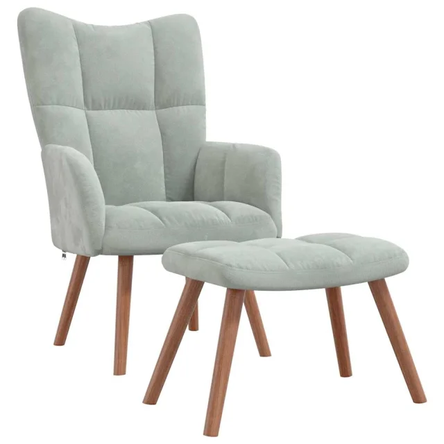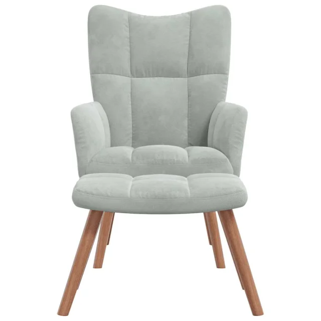 vidaXL Stol za sproščanje s stolčkom svetlo siv žamet