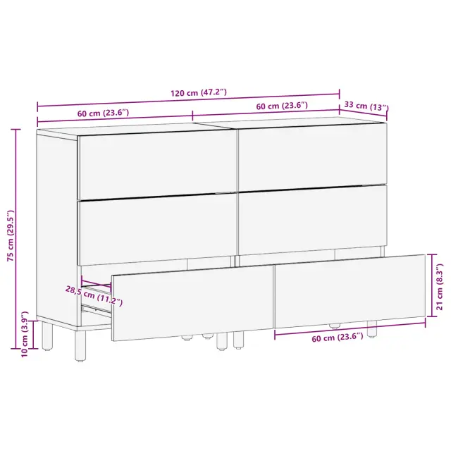 • Splošne dimenzije: 120 x 33 x 75 cm (D x Š x V)