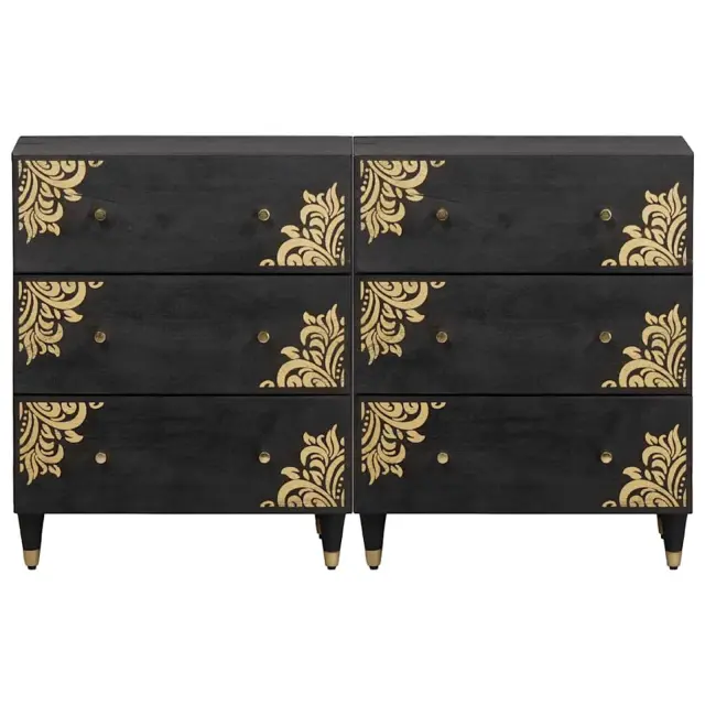 vidaXL Strani šal 2 pcs Črna 60 x 33 x 75 cm Masiven les manga