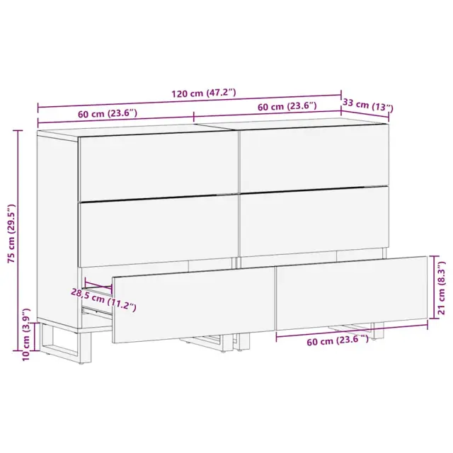 vidaXL Strani šal 2 pcs Rjava 60 x 33 x 75 cm trden mangov les
