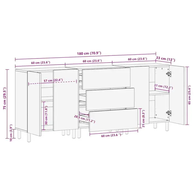To moderno stransko pohištvo s čistimi linijami in minimalno okrasnostjo ponuja stilsko rešitev za tvojo dnevno sobo. Njegova elegantna pravokotna zasnova iz masivnega mango lesa se sklada s sodobno estetiko, kar ga dela odličnega osrednjega elementa. Zasnovano za tiste, ki cenijo funkcionalnost brez kompromisov pri oblikovanju, to stransko pohištvo zadostuje potrebam sodobnih notranjosti in nudi tako vizualne kot praktične koristi s svojo premišljeno konstrukcijo in elegantnim videzom.
